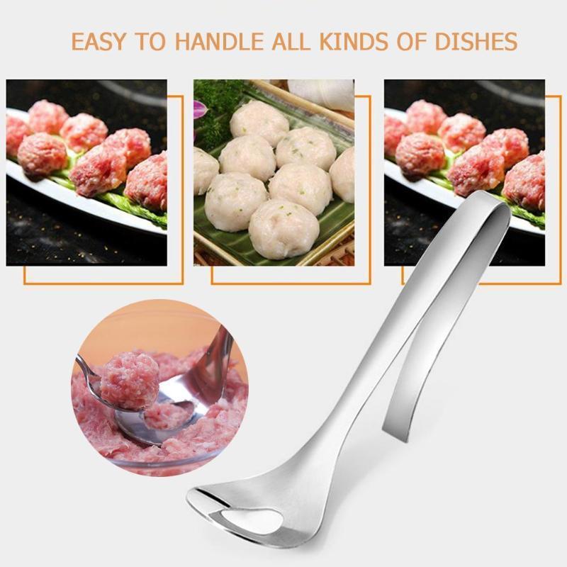 Pode ser usado para fazer almôndegas, bolinhos de peixe, bolinhos de arroz, bolinhos de legumes e muito mais. Você pode simplesmente pressionar a colher na carne picada, depois usar outra colher e obter uma almôndega perfeita!